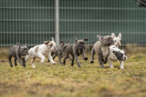 Unsere neun Bulldoggen sind circa 13 Wochen alt und welpentypisch verspielt und verschmust. Sie müssen noch alles lernen, was Welpen so lernen müssen.