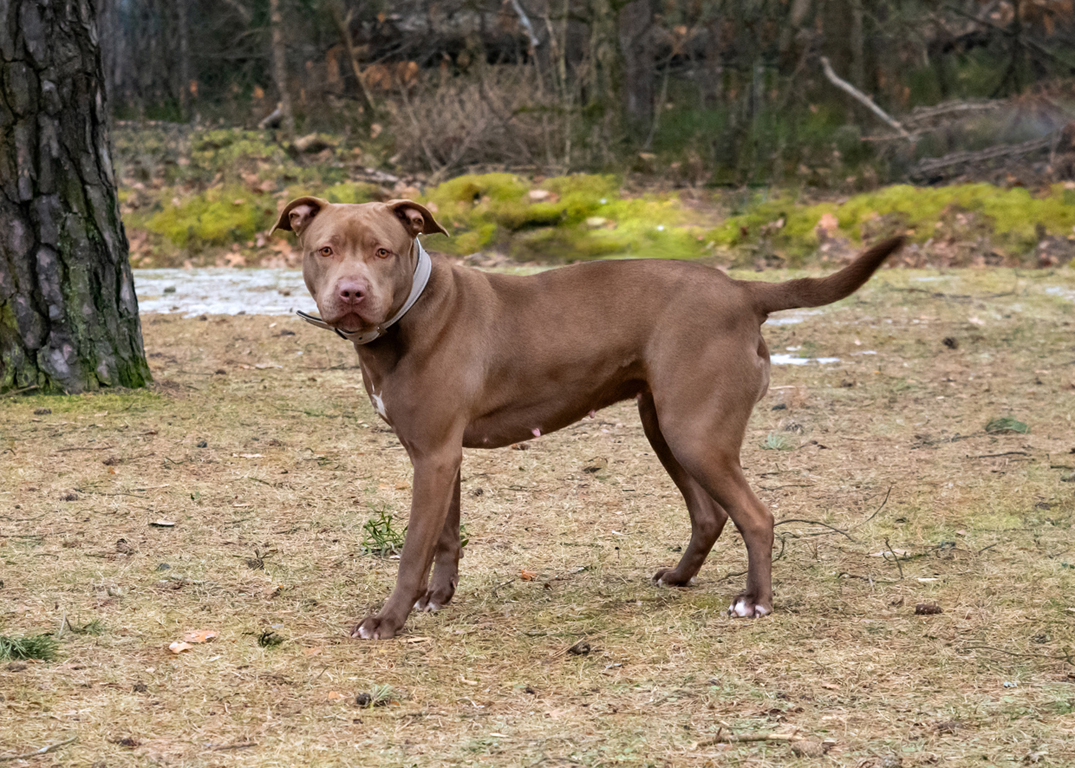 Sie ist bei uns gelandet, weil sie in Bayern ein Hund der Kategorie 1 ist und nicht gehalten werden darf.