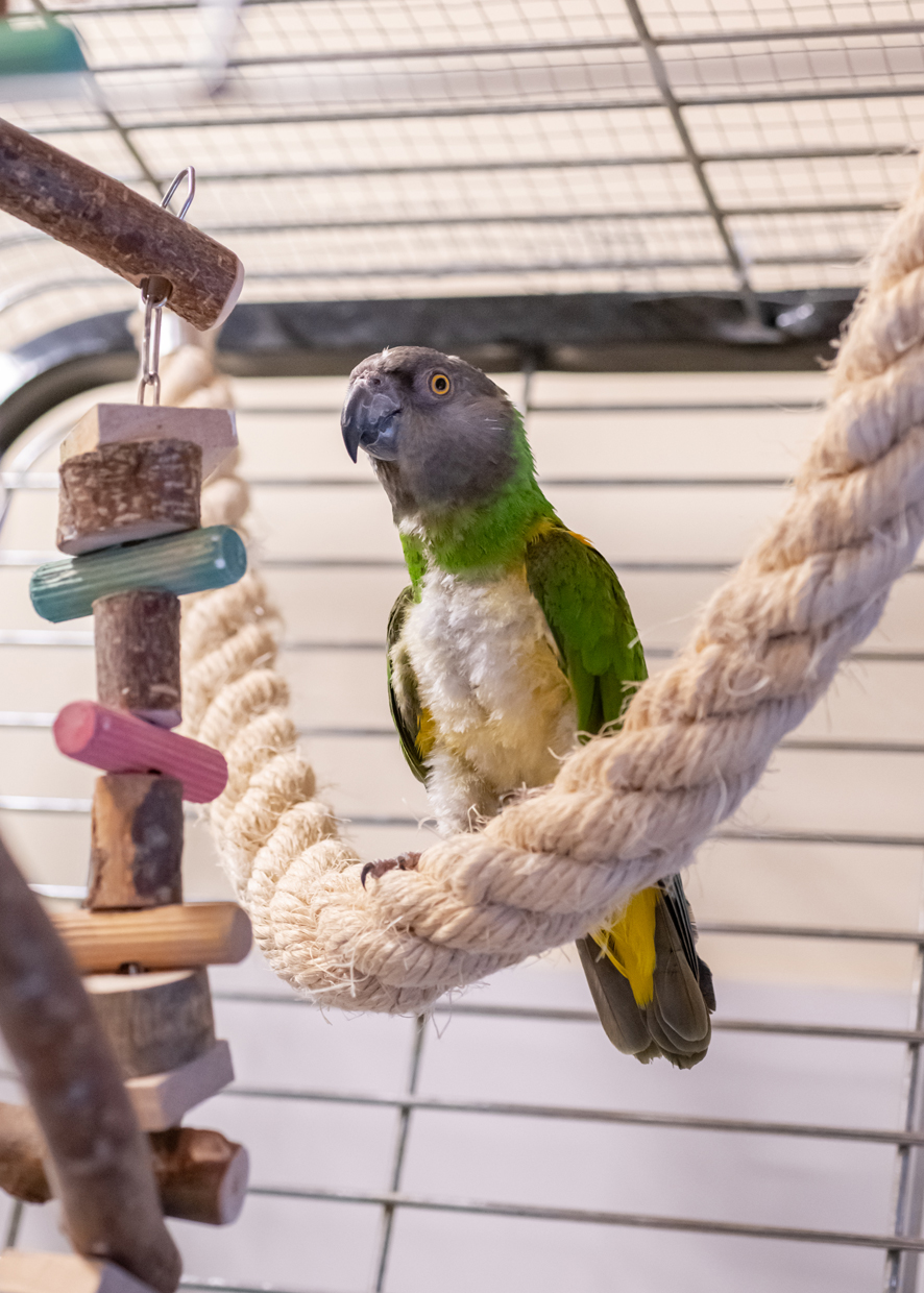 Die beiden Senegal Papageien Pari und Senator sind aus unterschiedlichen Gründen bei uns gelandet.