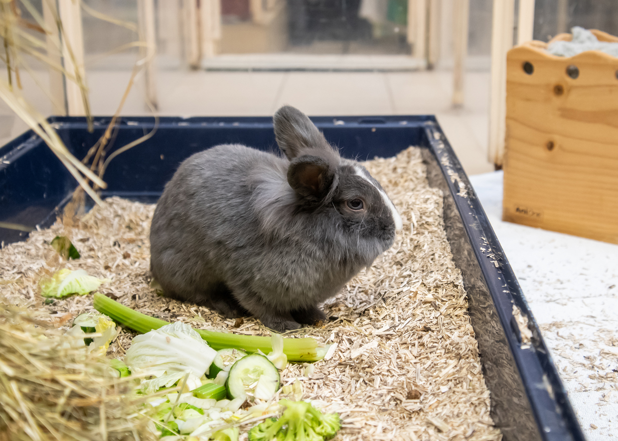 Das Kaninchenpärchen wünscht sich jetzt ein ruhiges neues Zuhause ohne andere Kaninchen. Pfeffer ist eine etwas eigene, dominantere Kaninchendame, die auch mal zwicken kann. Kinder findet sie nicht so gut.